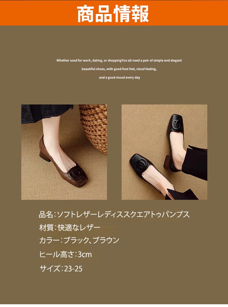 ソフトレザーレディススクエアトゥパンプス全体画像